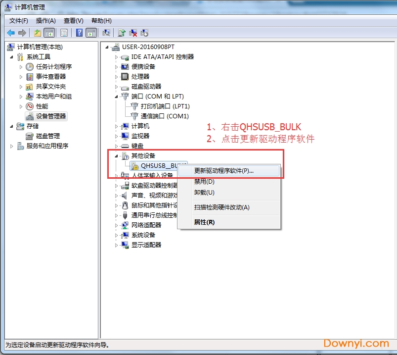 右键点击,然后更新驱动程序,如图: