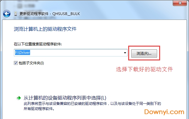 选择下载好的驱动文件,点击浏览,如下图: