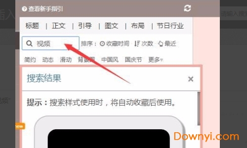 2、打开135编辑器,接着在左边的搜索框中输入“视频”,选择一个自己喜欢的样式。