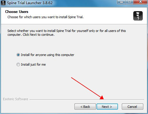 1、在本站下载解压后,得到程序"SpineTrialSetup.exe",双击开始安装