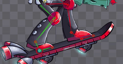 蒙皮允许将网格中指定的点附加给指定骨骼。然后附加点将随着骨骼移动,网格则随之自动发生变形。现在可以用骨骼动作控制角色的图片进行弯曲变形了。