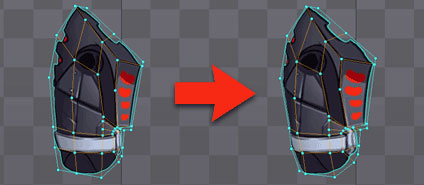 允许你在矩形边界内自定义多边形。这将提高最终纹理贴图集的空间使用率,因为在多边形外的像素将被忽略掉,这种优化对移动设备来说特别重要。网格的另外一个功能就是支持自由变形和蒙皮。