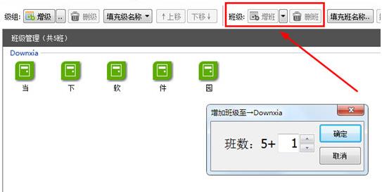 4、接着就可以添加并设置班级啦,直接点击红框标注内的增班,输入具体的增班数量,接着点击班级更班级名称,由此也就完成了设置班级的全部内容,如下图所示: