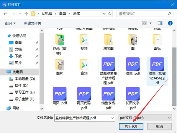 3、在弹出的窗口中,将需要提取页面的PDF文件选中,并点击“打开”按钮,将其导入极光PDF阅读器。