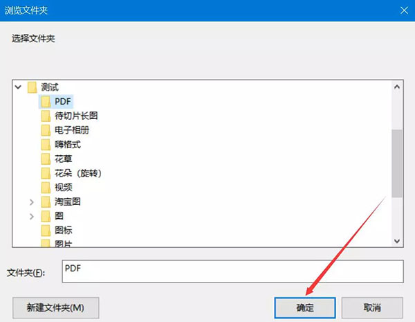 6、在弹出的浏览文件夹窗口中,选择提取了PDF页面后的保存路径,再点击“确定”按钮。