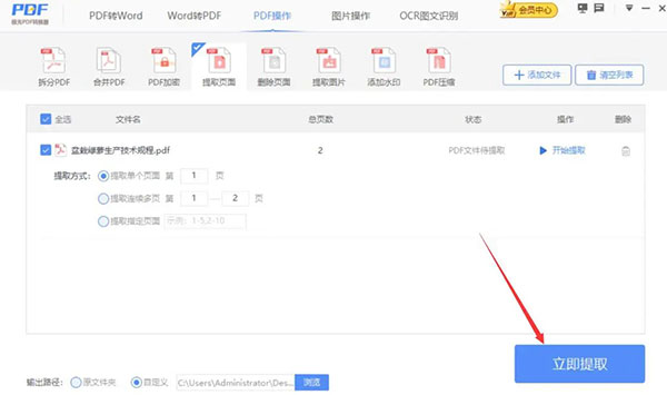 7、最后,我们点击界面右下方的“立即提取”按钮,极光PDF阅读器便开始提取PDF页面。