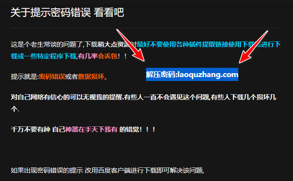 4、等待全部下载完毕,之后解压part01时输入解压密码【laoquzhang.com】即可,建议使用网盘客户端下载保证文件完整