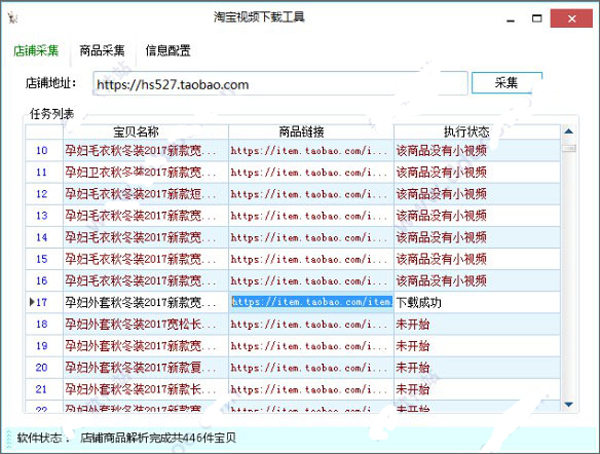 2、将你要采集的店铺或宝贝地址复制到软件中点击采集。