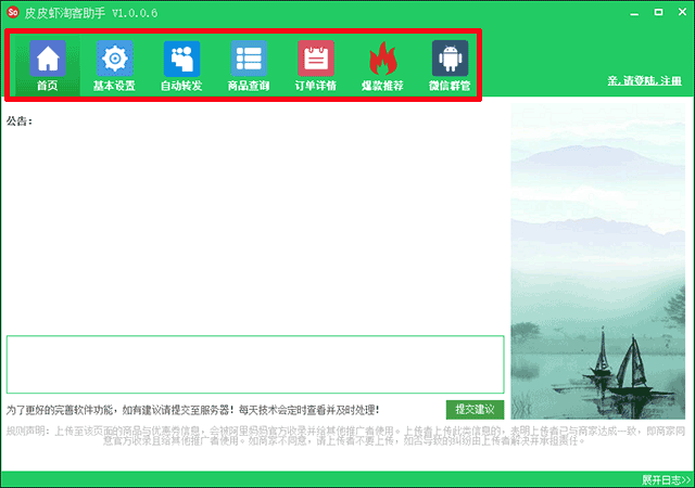 1、下载皮皮虾淘客助手.exe软件,点击运行,出现一个可以登录的界面,您可以直接登录界面