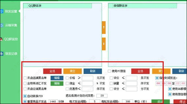 5、这个就是转发的界面,可以在这里输入自己的商品链接,点击下方的过滤黑名单、设置发送条件
