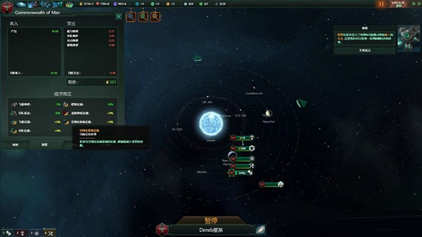 经济效应主要是统计飞船维修、军队保养、飞船花费、军队花费、建筑花费、消除障碍、空间站花费的减少。