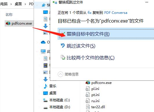 11、打开fix文件夹将pdfconv.exe复制替换到文件中;