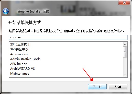 1、在本站下载解压后,得到文件"aimeike_offline_installer.exe",双击进入安装向导。2、下一步。