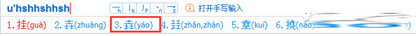 垚 ----- 笔画为:横竖横竖、横竖横竖、横竖横竖 ,只要输入(uhshhshhsh),如图:
