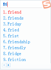 切换成智能英文输入模式之后,只要输入“fri”,就可以把friend提示出来了,再按一下“Ctrl + shift + E”键组合又可以返回到智能中文输入模式。