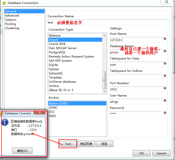 测试通过之后点击OK就回到最开始的界面,这时候选择test数据库连接,然后出入你的工程(我是这么叫的)ID和name,这里要记住,因为以后kitchen调度的时候要输入这个参数。
