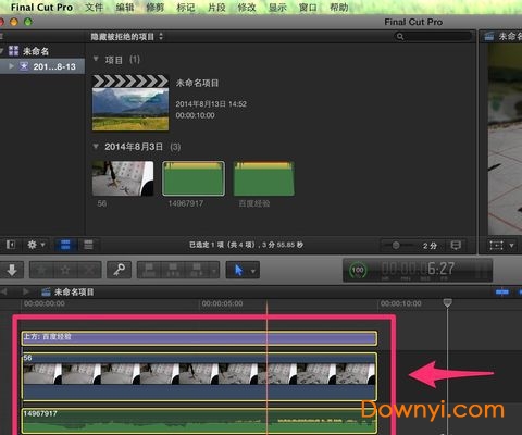 用finalcutpro将视频裁剪等操作完成后,用鼠标全选项目内的所有内容