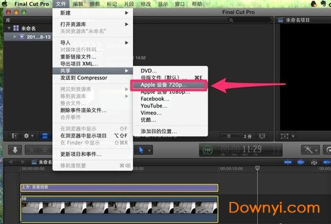 找到顶部菜单栏中的“文件——共享——apple设备720p”这一栏并点击进入下一步。