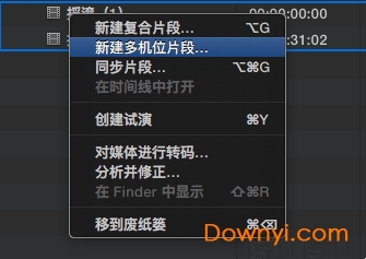 1、在[事件]中选择多机位素材并右键,选择“新建多机位片段…”创建新的多机位复合片段。