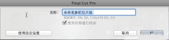 2、在弹出的窗口中给新生成的多机位片段起个喜闻乐见的名字。记得保持“使用音频进行同步”处于勾选状态,多段素材的同步切换全靠它了。