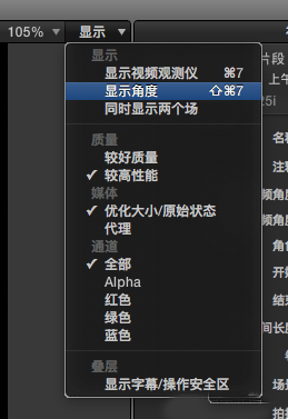 5、点击[画布]右上角的下拉菜单选择“显示角度”开启多机位编辑窗口。
