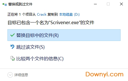 6、我们将解压得到的crack文件夹中的“scrivener.exe”复制到软件安装目录下,然后点击替换
