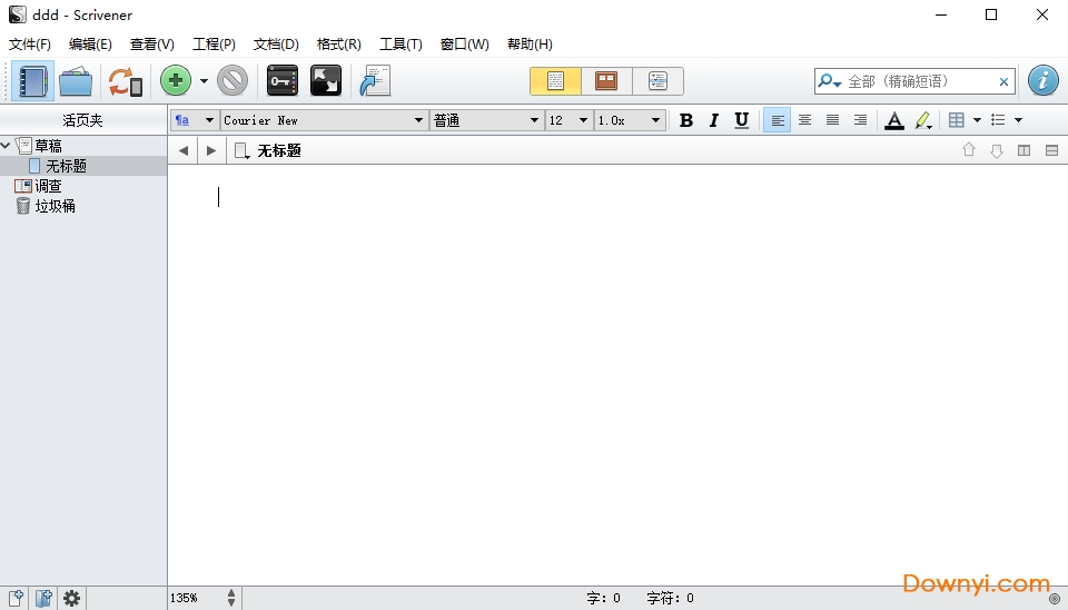 工具栏:scrivener中文版包括常用的功能快捷、视图模式切换和项目搜索