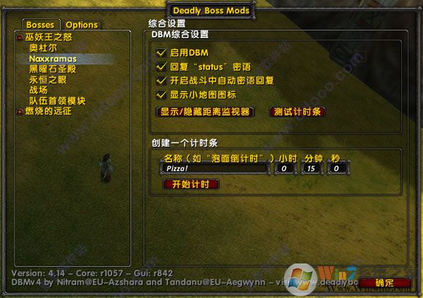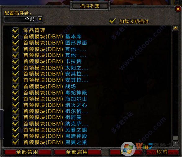 6、DBM包含许多子模块,当进入对应地区时,相应的模块会被自动载入。当然,您也可以手动载入这些模块。子模块可以在插件列表中看到