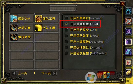 4、开启后,您可以在小地图按键包中找到DBM的设置按钮