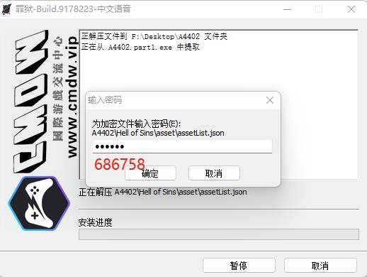 2、双击“A4402.part1.exe”程序进入游戏解压步骤,然后输入安装码“686758”;