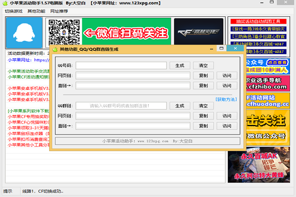 小伙伴们喜欢玩游戏吗?那就千万不要错过这款小苹果活动助手最新版!作为一款可以帮助小伙伴们一键领取游戏礼包福利的电脑助手,真的是非常的好用!穿越火线、逆战、QQ飞车、英雄联盟、DNF等热门游戏活动福利都可以通过小苹果活动助手最新版一键领取,再也不用一个一个的打开活动页面领取了,感兴趣的小伙伴不妨下载试试看吧!