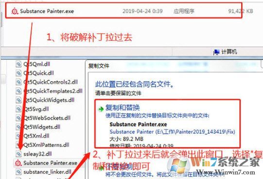 3、将破解补丁“Substance Painter.exe”复制到软件的安装,目录中“C:\Program Files\Allegorithmic\Substance Painter”在自动跳出的文件复制窗口,点击“复制和替换”即可;