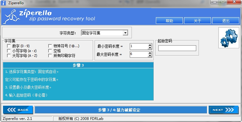ziperello是一个创建用户界面的向导,包含大量的上下文提示。让你充分了解正在发生什么,以及你应该做的密码搜索过程的每一步。