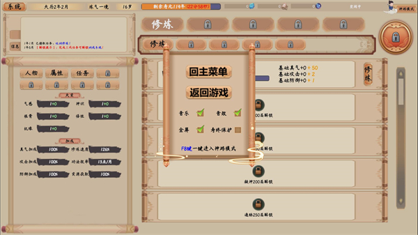 游戏进入中期后,就可以建立自己的宗门了。虽然是点击进度条的简单操作方式,但各种管理元素可用于招募不同的人才,收集发展资源,建造宗派设施,征服世界。