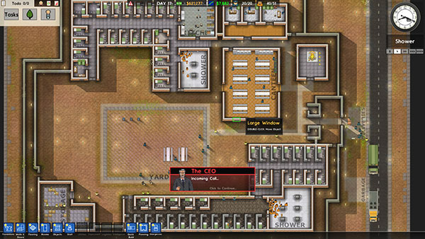 包括淋浴设施,洗衣设施,食堂和厨房,以及最重要的遥控门,这可以让大批犯人陷入愤怒状态,当然,加上教唆属性,此时出去和狱警大战八百回合一定是绝佳的选择。