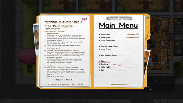 2、双击运行"Prison Architect.exe"程序,即可直接打开游戏进行玩耍,但默认是英文语言,需要更换为中文;