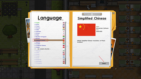 5、在这里若不认识英文可以看国旗识字体,选择Simplified Chinese简体中文语言,再点击下方的Select;