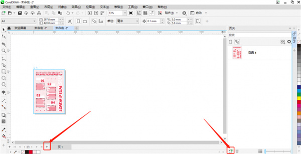②创建后在主界面可以看到页面的序号,软件默认创建页面1。