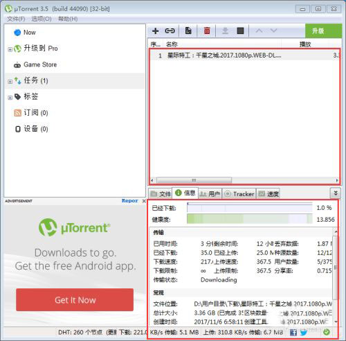 utorrent中文版是一款小型迷你BT客户端,可以帮助用户高速下载种子文件,分享和传输文件,能够充分利用网络带宽,提供快速的下载速度。utorrent中文版还提供了多种实用功能,如RSS订阅、自动下载、IP过滤等,方便用户进行种子管理和下载,有需要的用户不妨下载试试看吧!更多功能等待你来体验。