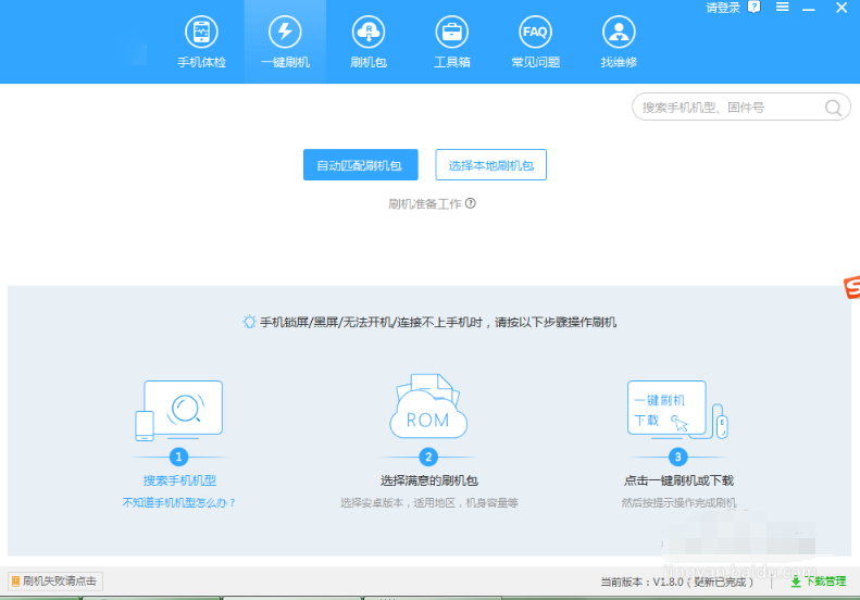3、连接成功后,自己自动匹配刷机包,或者选择本地自己下载的刷机包(找不到可以去手机官网查找或论坛上找)