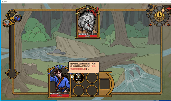 7、怪物受到攻击后即开始下一回合,妖怪攻击玩家,玩家将自己头像往下拖拽即可开始下一回合