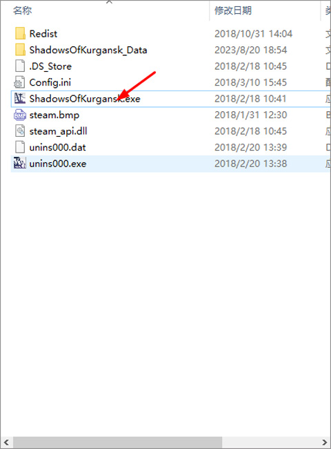 2、最后解压游戏文件,并运行如下图箭头指向的ShadowsOfKurgansk.exe文件即可!