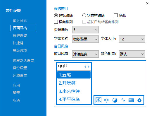 ●?所谓调频,其实就是候选项的排序。冰凌输入法提供了默认、自动、系统词频、最近输入和单字优先等六种排序方法,可在“输入法配置”对话框的“候选设置”中重设“候选项词序”项。