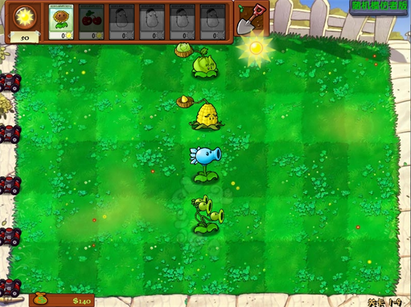 2、开始游戏,推荐种植在中方以免出现僵尸直接暴毙;