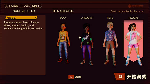 7、游戏中为玩家提供了4个游戏角色,玩家可以自主选择