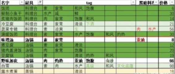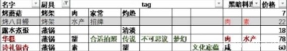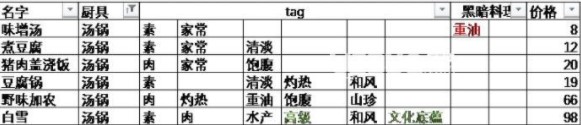 首先是这十二个菜品的可扩展性都是极高的,其次菜品中有针对性tag如:“文化底蕴”,“生”和“下酒”。