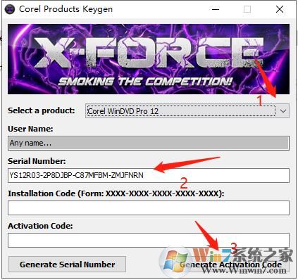 之且使用Keygen.exe注册补丁,选择Corel WinDVD Pro 12,获得注册码后点击Generate;