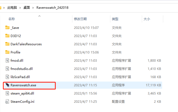 2、进入解压好的文件夹,双击“Ravenswatch.exe”程序,即可打开游戏