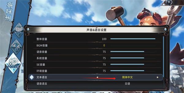 4、而后在声音&语言设置中选择第七个选项,文本语言设置成简体中文即可。