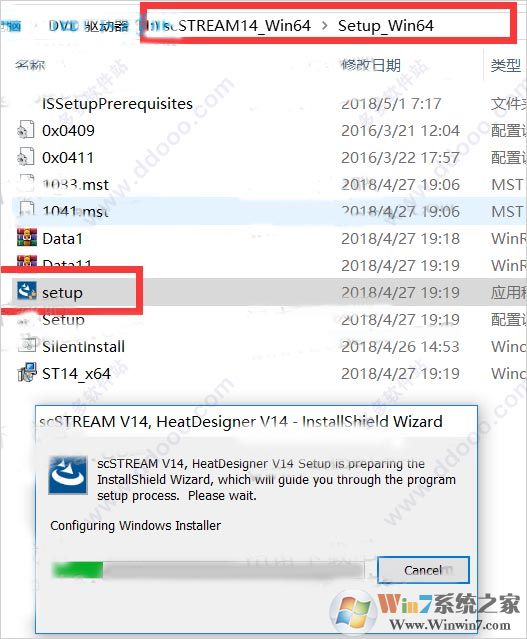 2、小编以scSTREAM_HeatDesigner_v14_Win64为例,加载scSTREAM_HeatDesigner_v14_Win64.iso,运行里面Setup_Win64文件夹内的setup.exe;